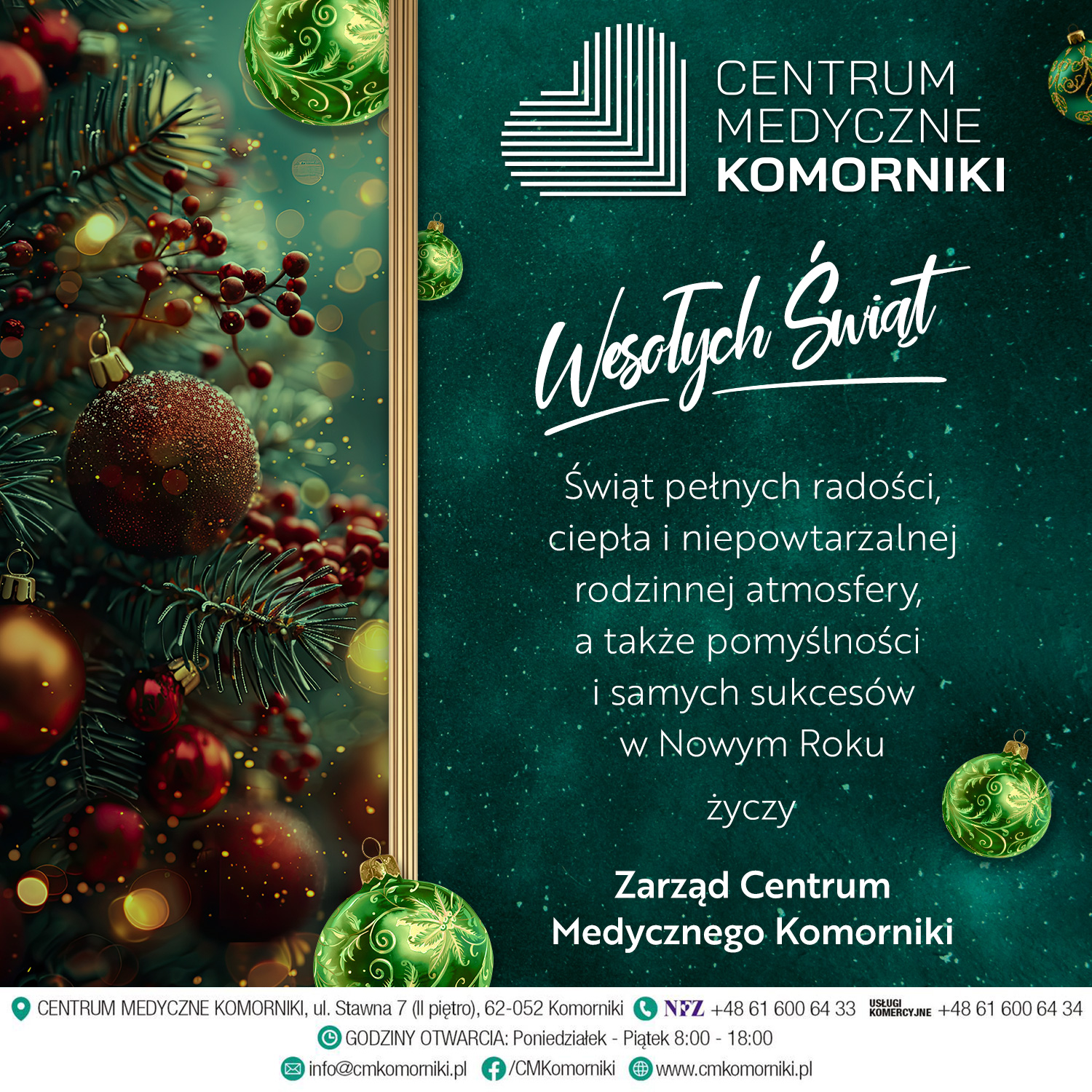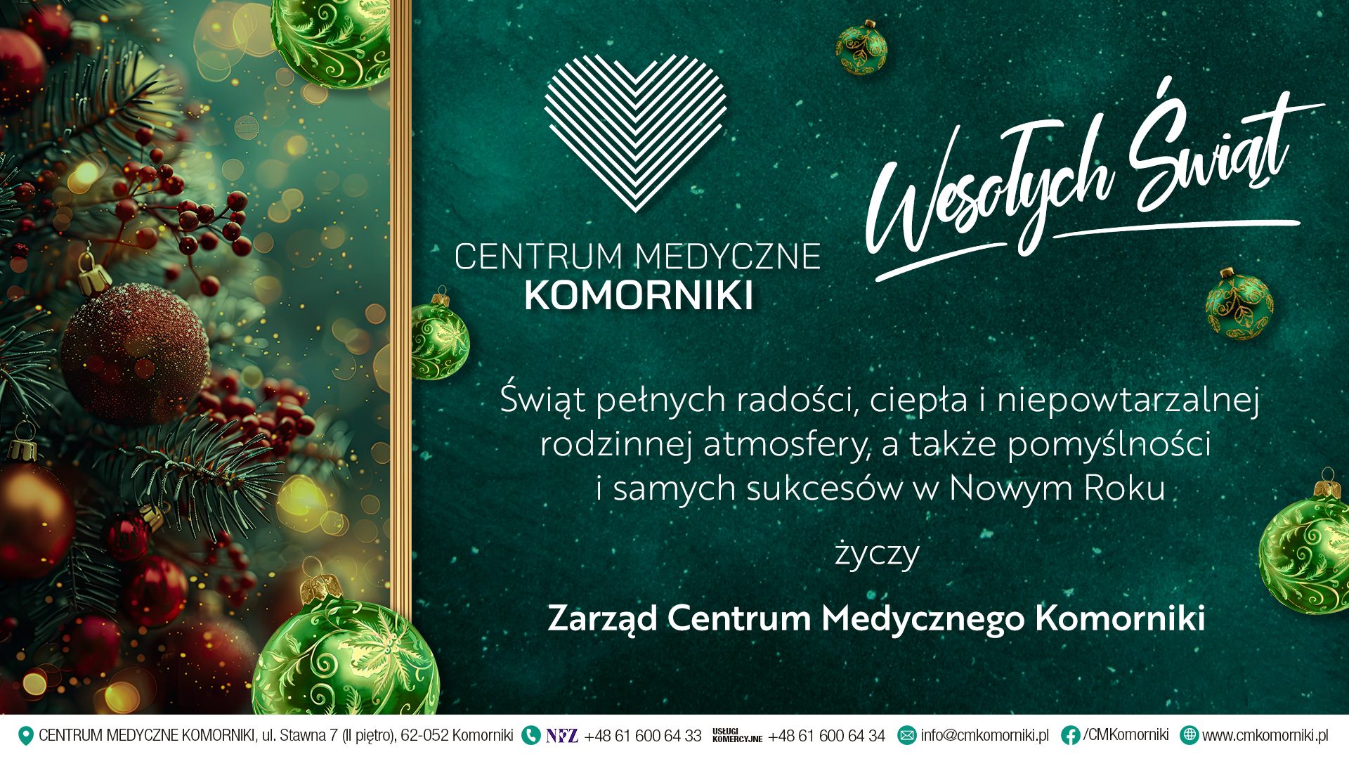 Nowoczesne, wielospecjalistyczne Centrum Medyczne w sercu Komornik. Centrum Medyczne Komorniki to placówka medyczna, realizująca świadczenia medyczne z zakresu Podstawowej Opieki Zdrowotnej jak również Ambulatoryjnej Opieki Specjalistycznej. Placówka od kilku lat rozwija się dynamicznie i świadczy wysokiej jakości usługi medyczne dla mieszkańców Komornik, Poznania i okolic. Centrum Medyczne Komorniki jest położone na drugim piętrze Gminnego Ośrodka Zdrowia w Komornikach i oferuje szeroki zakres usług medycznych dla pacjentów w każdym wieku.