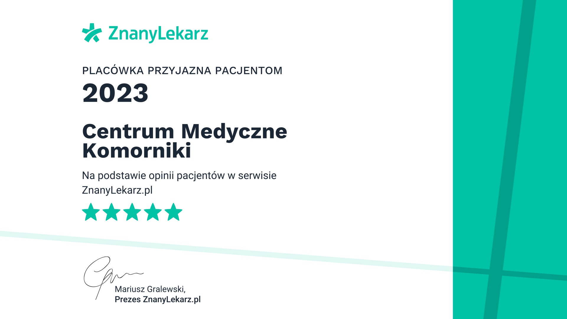 Szanowni Państwo! Nasze starania zostały docenione! Centrum Medyczne Komorniki otrzymało wyróżnienie za 2023 rok Certyfikaty Jakości są corocznie przyznawane jako…
