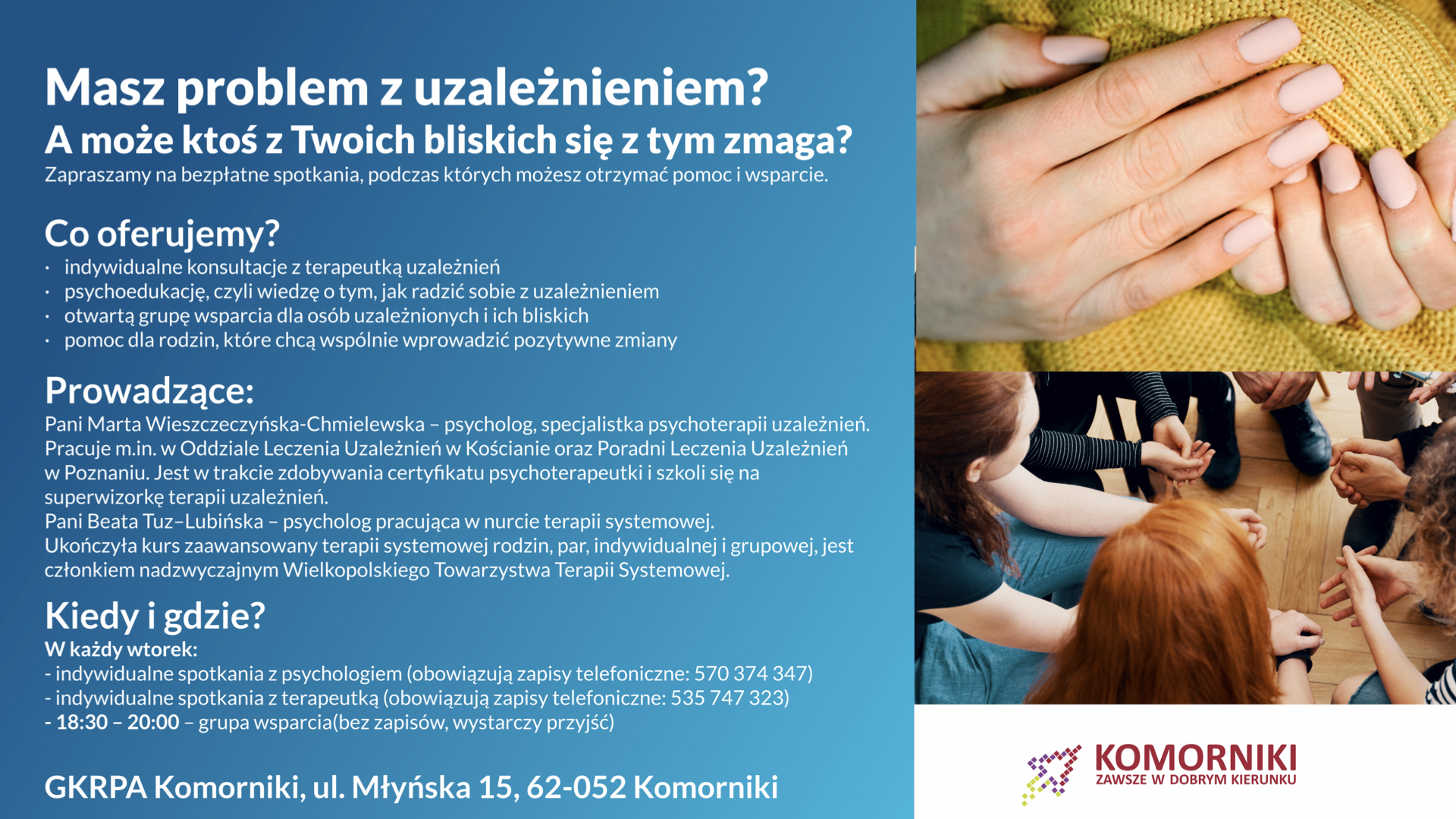 Masz problem z uzależnieniem lub ktoś z Twoich bliskich się z nim zmaga. Wspólnie z GKRPA Komorniki informujemy o możliwości…