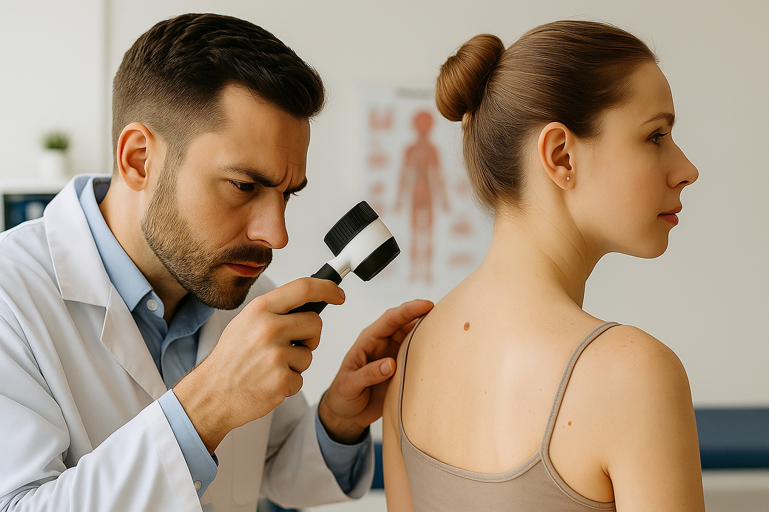 Lekarz dermatolog leczy takie schorzenia jak: wysypka, wypryski, opryszczka, przebarwienia skóry, trądzik, wypadanie włosów, łysienie, bielactwo, nadmierna potliwość, znamiona, włókniaki, tłuszczaki, naczyniaki, oparzenia, AZS, łuszczyca, brodawki, zmiany skórne, nowotwory skóry, choroby przenoszone drogą płciową, którym towarzyszą objawy skórne, kłykciny kończyste, świerzb, wszawica. Podczas wizyty lekarz dermatolog zbiera wywiad, ogląda zmiany skórne, kieruje w razie potrzeby na badania specjalistyczne oraz zapisuje odpowiednie leczenie.